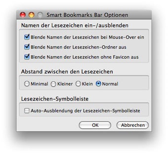FazitDie Einstellungen der Smart Bookmarks Bar sollte Mozilla Firefox standardmäßig bieten. Mit der Freeware bringt man zwei bis viermal mehr Lesezeichen auf der Leiste unter ohne auf die Namensangabe verzichten zu müssen. Die Funktion für das automatische Verstecken schafft zusätzlichen Platz.